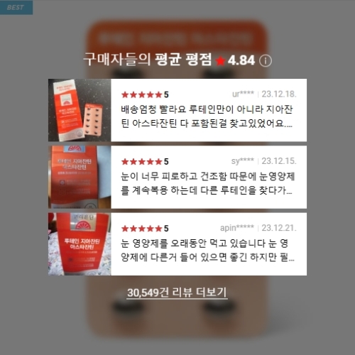 눈의 피로도 개선에 좋은 아스타잔틴까지 한번에 섭취